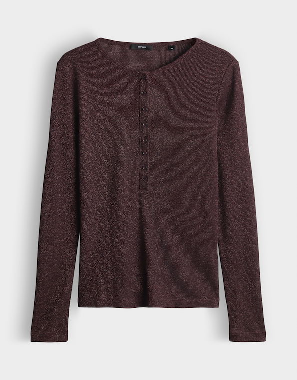 Glitter shirt van Opus in een fijne ribstructuur met lange mouwen en een ronde hals voorzien van korte knoopsluiting.