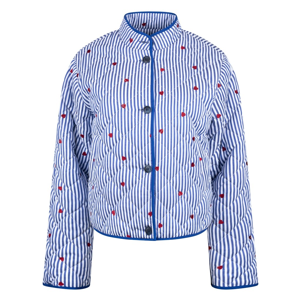 Gestreepte, doorgestikte jacket van Nukus voorzien van een subtiele hartjesprint met lange mouwen, opstaande kraag en een knoopsluiting. Materiaal: Polyester 65%| katoen 35%