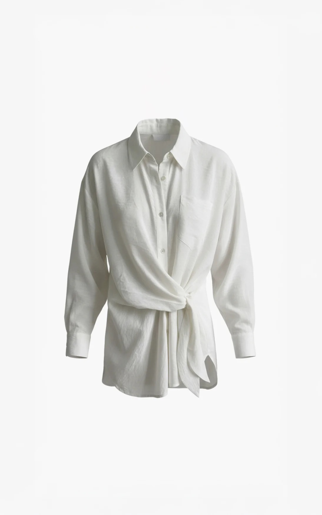 Blouse van Aimee the Label met lange mouwen, verlaagde schoudernaden, klassieke kraag, knoopsluiting, opgestikte borstzak en strikdetail in de taille.