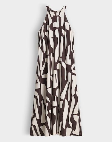 Mouwloze, A-lijn halterjurk jurk van Opus in een jersey all-over dessin met hoge ronde hals, keyhole met dubbele knoopsluiting aan de achterzijde en twee steekzakken in de zijnaden.