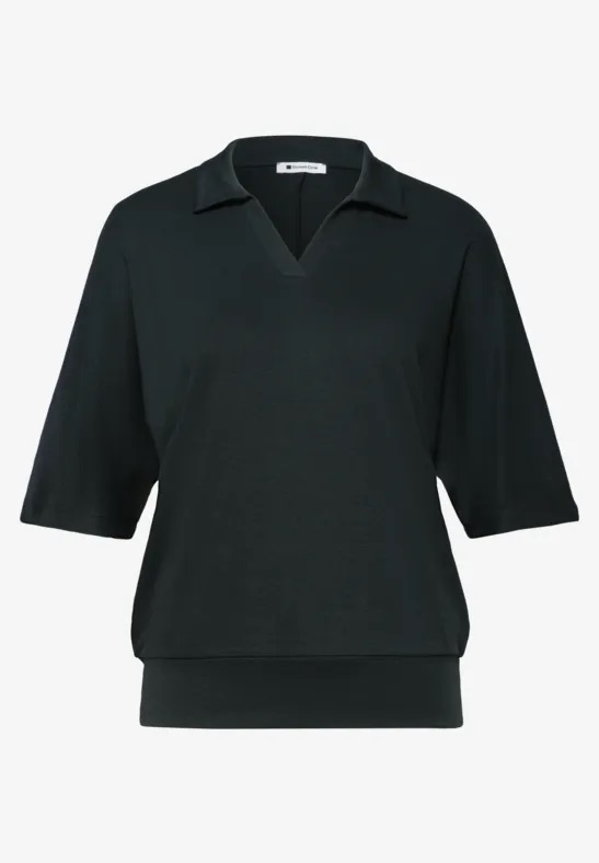Poloshirt van Street One met halflange mouwen, polokraag, V-hals en een elastische boord aan de onderzijde. Materiaal: Katoen 50%| modal 50%