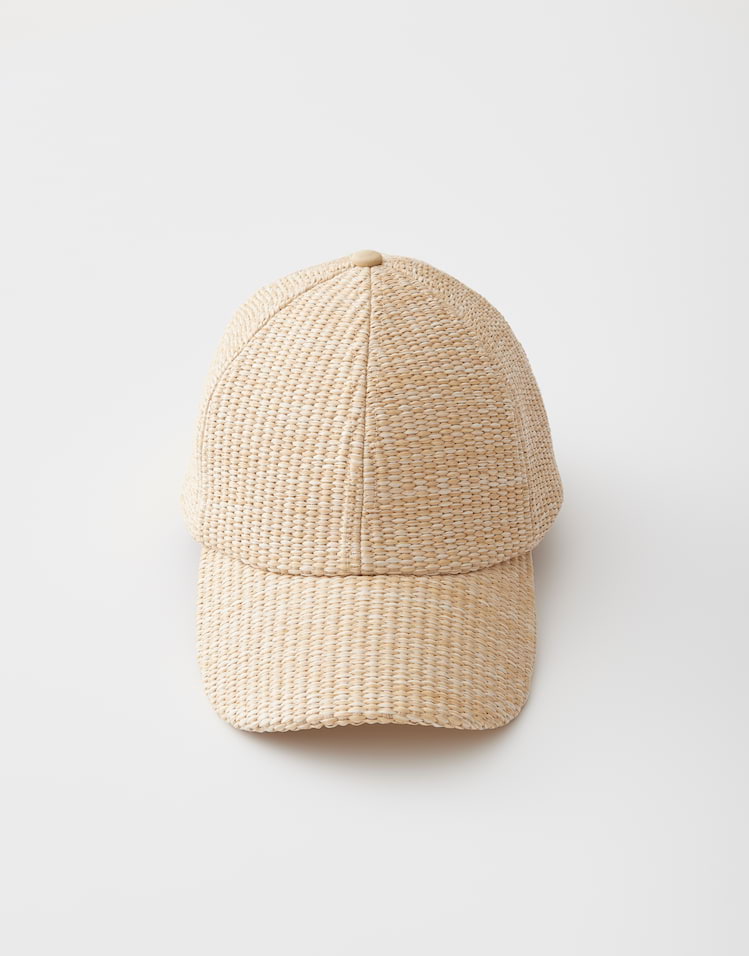 Baseball pet van Opus in een raffia-look met een verstelbare achterzijde. Materiaal: Polyethylen, polyester 40%| katoen 20%